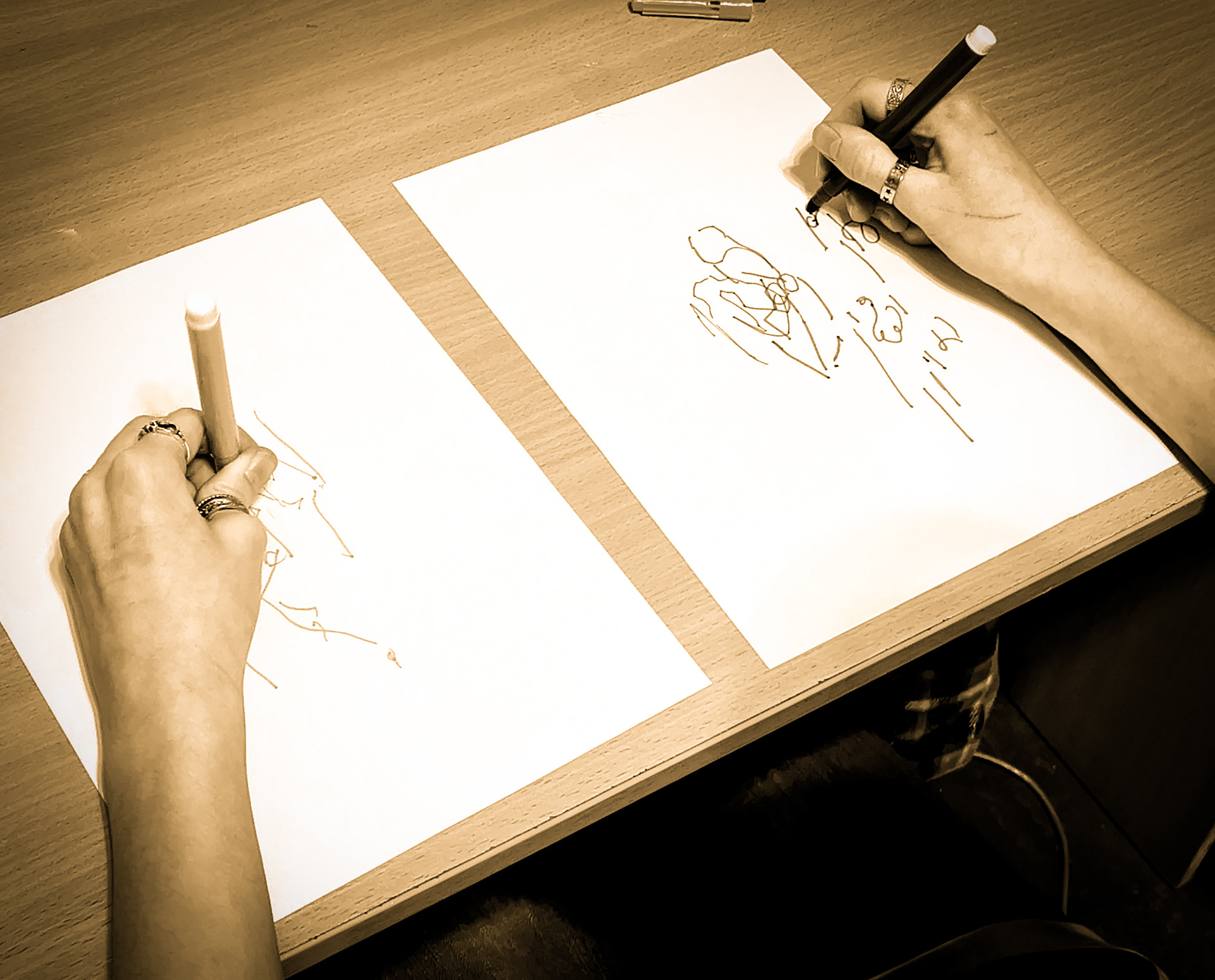 The project “Body in Tension” integrates elements of clinical art therapy, psychosomatics, and affect theory within an original intermedial methodology. In this conception, art becomes a process of transmedial affective communication — a flow between media, bodies, emotions, and spaces. Drawing, movement, and sound are not successive stages, but parallel languages of the body, in which memory, tension, and transformation are inscribed. On a theoretical level, the project develops research on the affective somatics of art, positioning the body as a site of memory, resistance, and regeneration. On a social level, it functions as a collective ritual of healing, which, in the context of war, acquires an ethical and existential dimension.