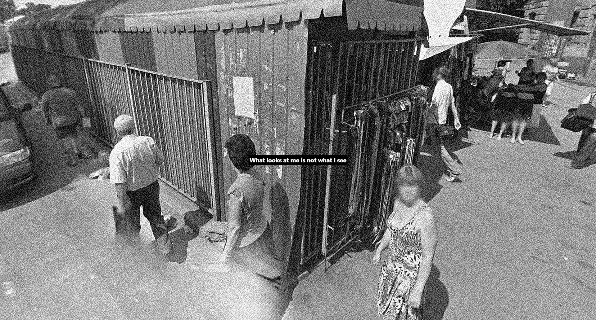That Which Looks at Me Is Not What I See (2025, video and post-photography). Fragments of Google Street View images (July 2015), buildings stretch, figures blur, objects collapse. A subtle digital intervention destabilizes the status of the document. What work critiques the regime of visibility, in which what is shown is not necessarily true. It records the digital fractures of a vanishing city, the pixelated ghosts of a time once scanned but now disintegrating.